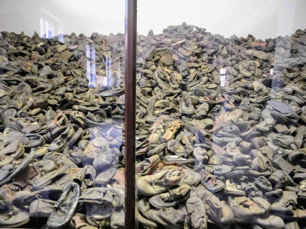 第一強制収容所跡地の博物館に展示されている収容者の靴(筆者撮影)