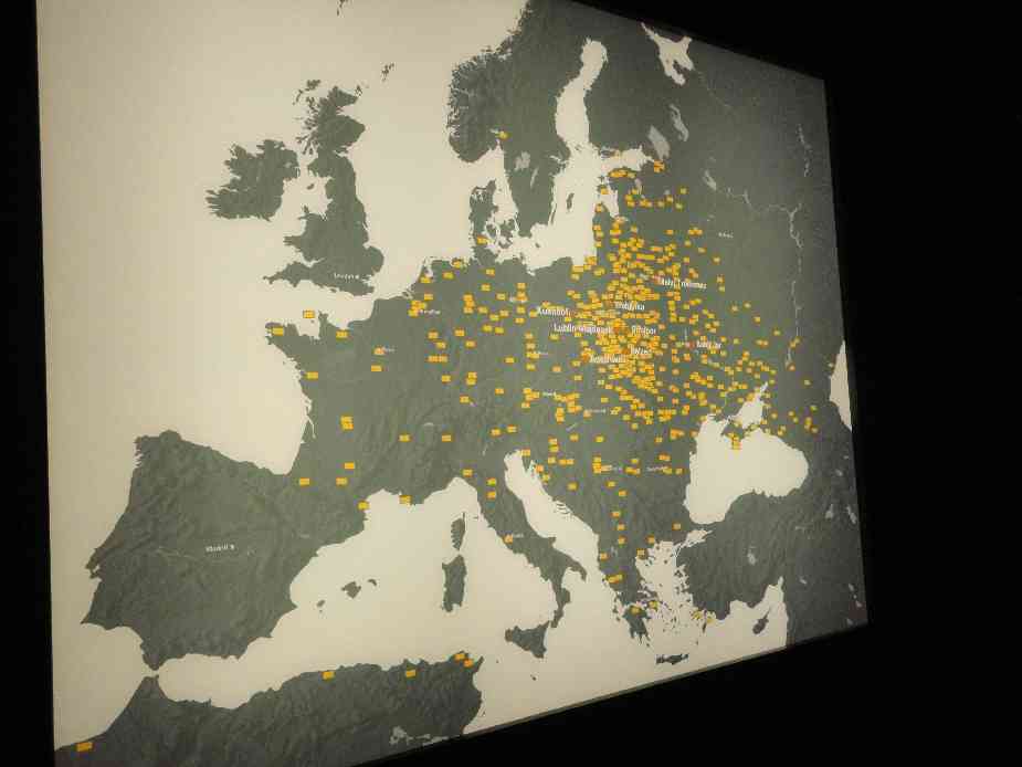 ナチスの強制収容所があった場所の地図の展示(筆者撮影)