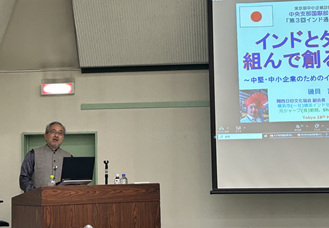 第3回インド通養成講座では、磯貝富夫氏(関西日印文化協会 副会長)をお招きし、「インドとタッグを組んで、創る未来!―中堅・中小企業のためのインド進出と成功の秘訣―」をテーマにご講演いただきました。前半では、世界から見たインドと日本の位置づけや、各国で活躍するインド人の存在感について解説があり、「インド世紀の到来」を印象づける内容となりました。