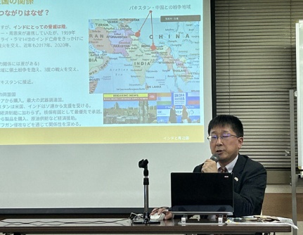 後半では、戦略的自律を重視する外交姿勢や、グローバルサウスのリーダーとしての自覚、粘り強い交渉を特徴とする外交スタイルについて、日本との比較を交えながら紹介されました。加えて、「バーラト」という国名の由来や食文化の多様性、NHK「視点・論点」出演時のエピソードなども披露され、インド理解を多面的に深める内容となりました。