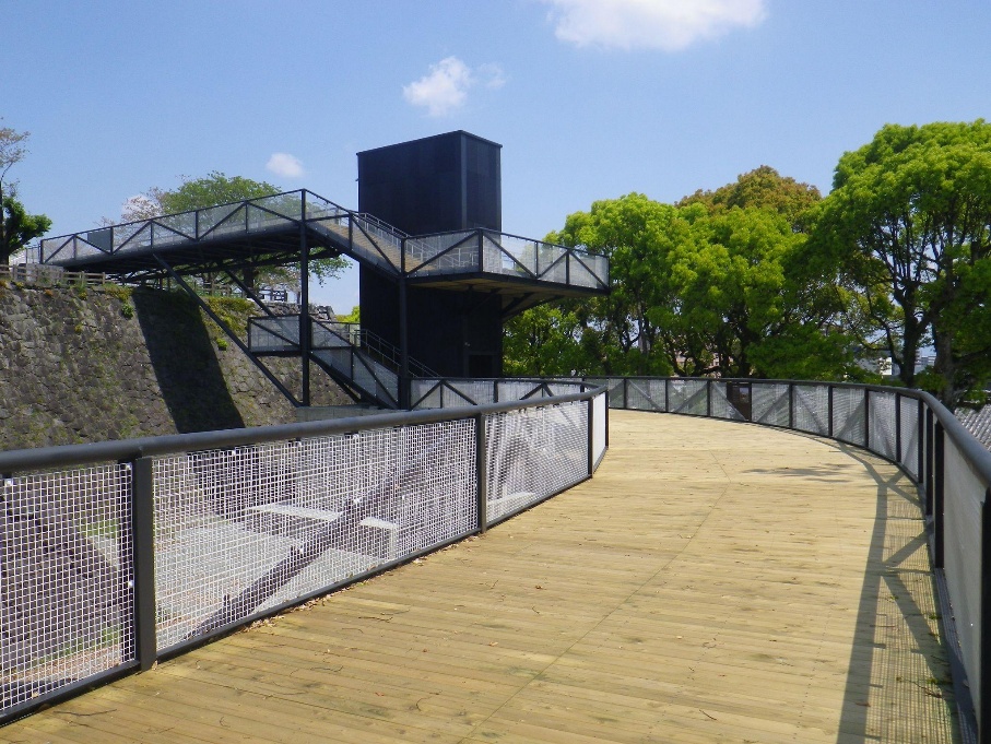 被災した熊本城の天守閣は2021年に完全復旧され一般公開されたものの、その他周辺地域の復旧が完成するのは、約30年後とされています。そこで熊本城では、復旧作業そのものを「見せる化」する試みが実施されています。具体的には、行幸坂を上った東側の入り口から天守閣前広場へとつながる、高さ約6m・長さ約350mの「特別見学通路」を設置し、被災状況や復旧工事状況も安全に見学できるようになっています。特別見学通路では、「熊本城アプリ」のダウンロードを推奨しており、そのアプリを通じて、多言語の音声案内、混雑状況の情報提供、ARによる写真の重ね合わせ等を提供し、インバウンド客にとっても大変便利なツールとなっています。