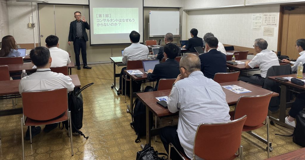 2025年9月24日(水)に開催した中央支部 能力開発推進部セミナーは、「儲かるコンサルタントになる3つの方法~週休三日で1000万円~」をテーマとして、佐藤公信氏(一般財団法人 経営者支援学会 代表理事)にご登壇いただきました。