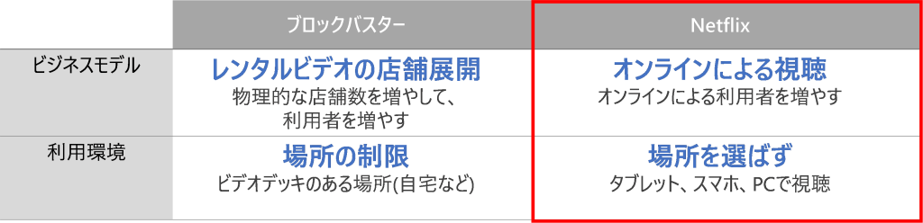 事例1:ビジネスモデルの変革 — ブロックバスターの失敗とNetflixの成長