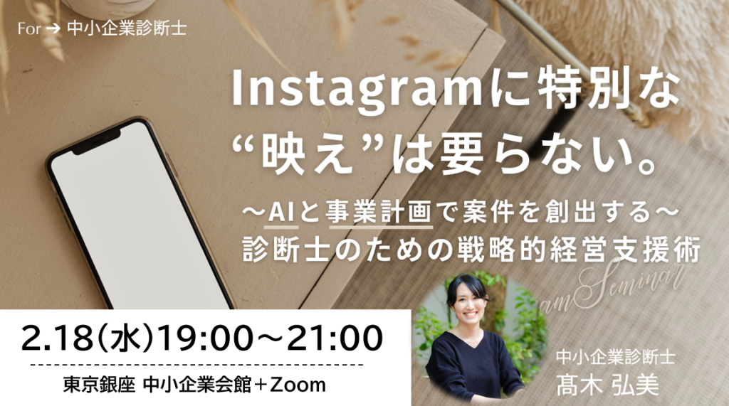 「Instagramに特別な“映え”はいらない。~AIと事業計画で案件を創出する~診断士のための戦略的経営支援術」のご案内です。
